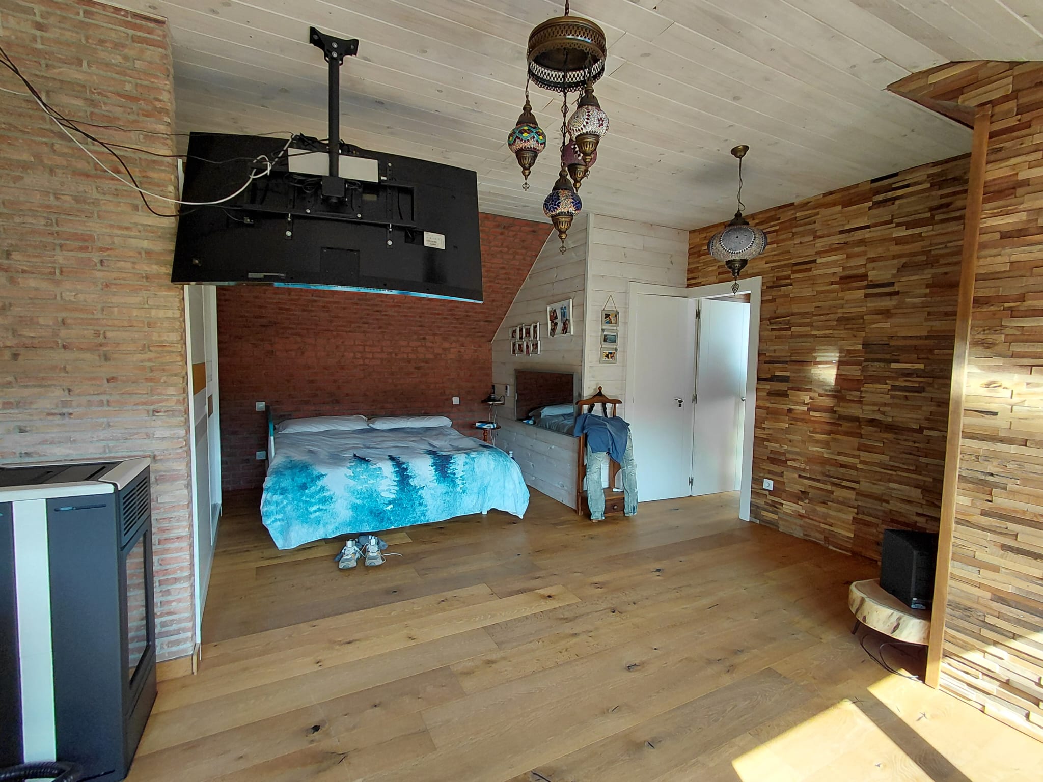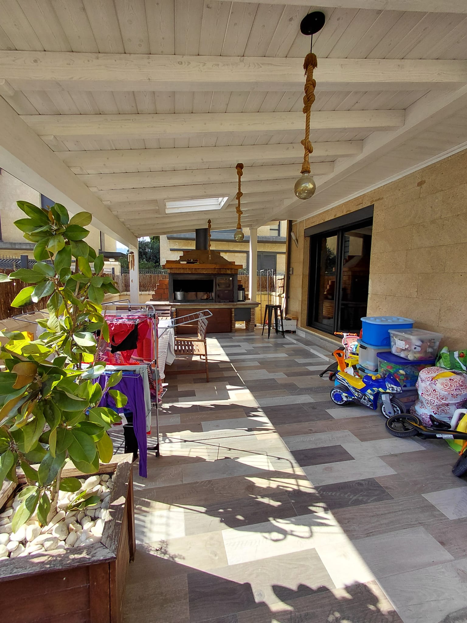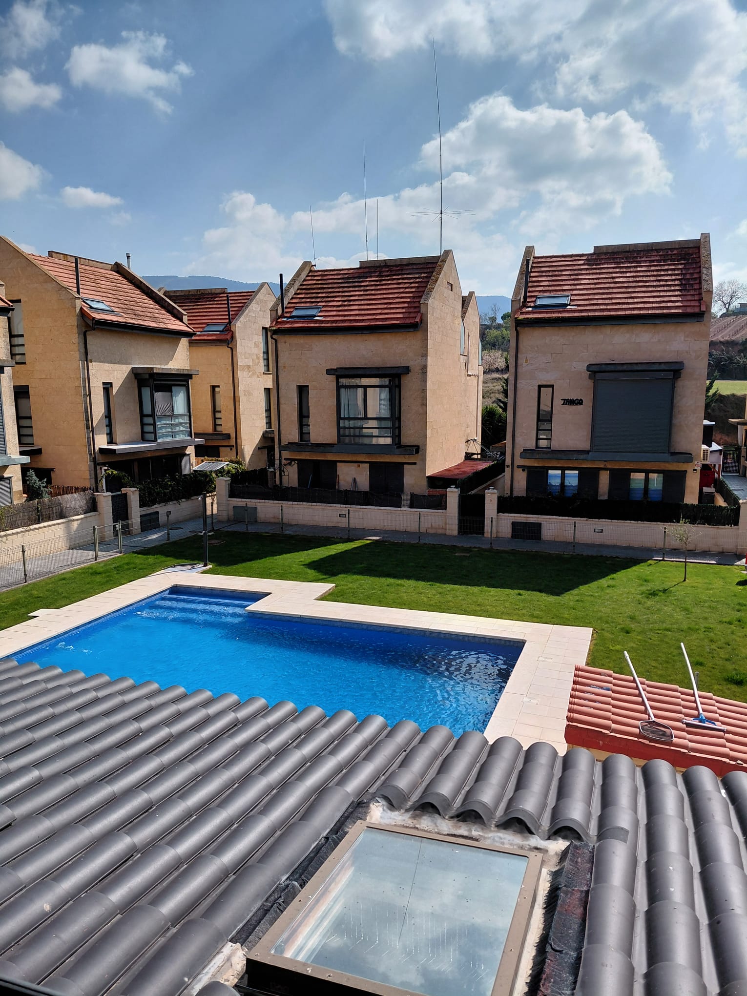 Gran porche de madera con una gran barbacoa y horno de leña, 3 habitaciones, dormitorio matrimonio de 30 m2 con chimenea independiente de pellets marca Edilkamin y con unas buenas vistas. Dispone de baño totalmente reformado. Amueblado, cocina y electrodomesticos de gran calidad, grandes ventanales con, aire acondicionado alta gama marca Daikin, chimenea pellets de la marca Edilkamin con ventilación a toda la casa, sistema de domotica y aspiracion centralizada, lamparas led por toda la casa, persianas motorizadas, garaje muy grande con cargador para coche electrico, piscina y zona verde comunitaria, pocos gastos de comunidad.60 metros de parcela individual .