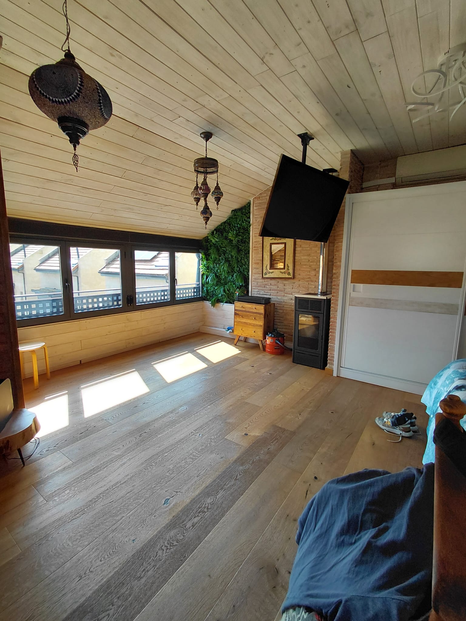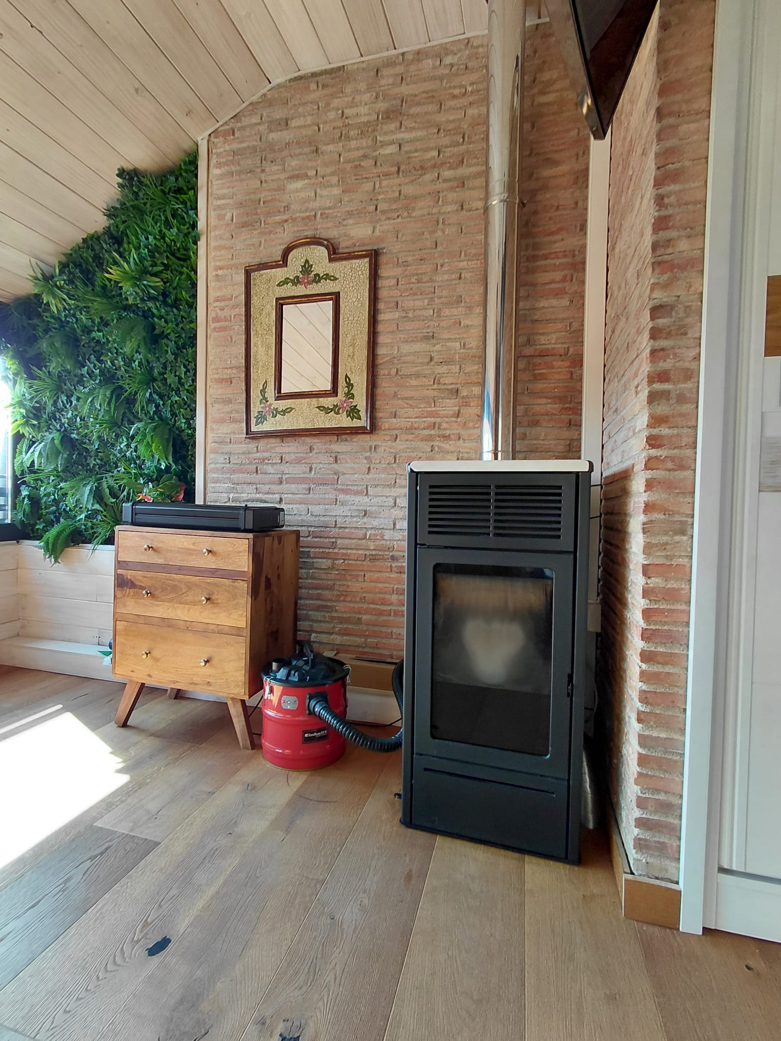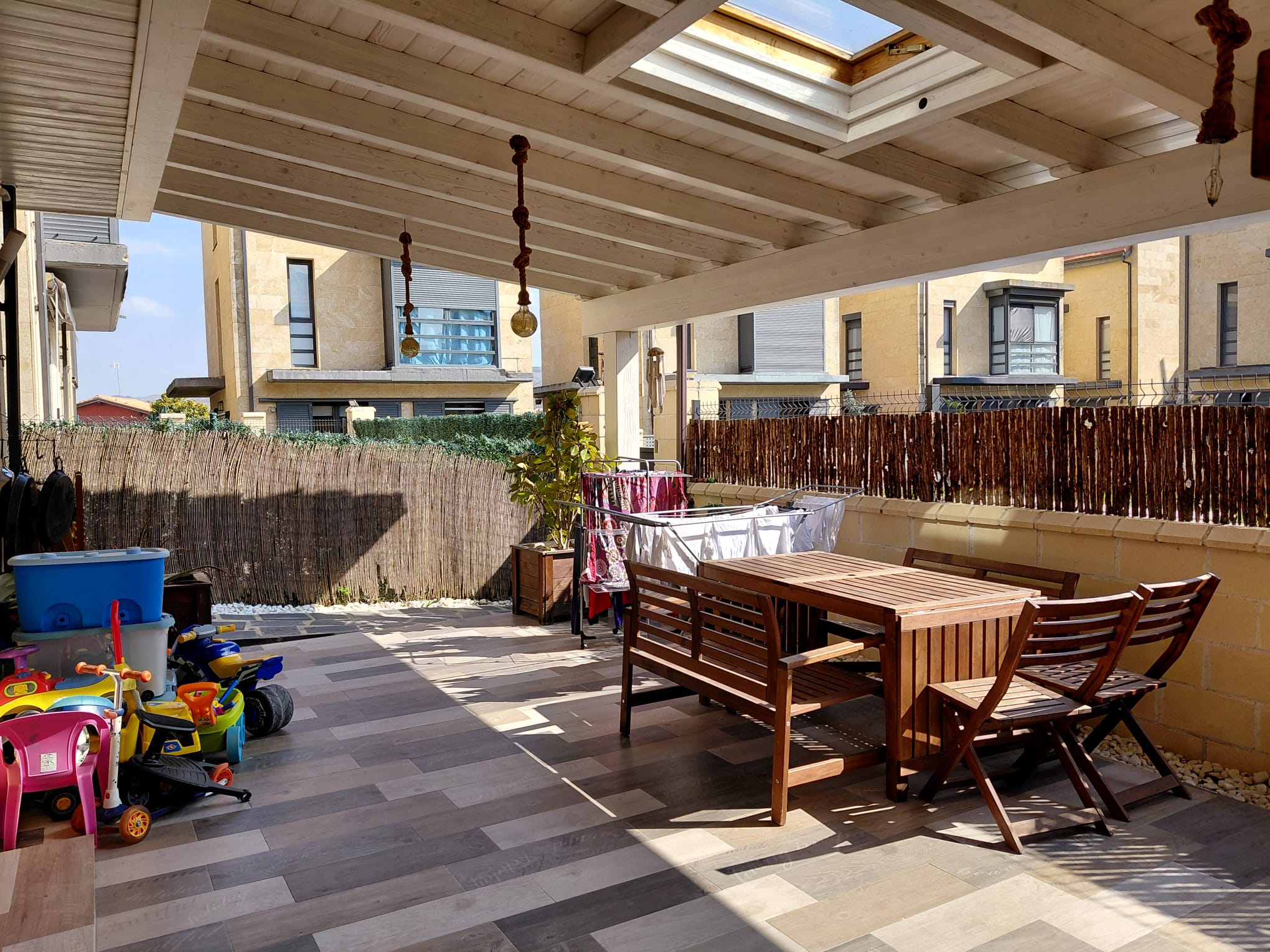 Gran porche de madera con una gran barbacoa y horno de leña, 3 habitaciones, dormitorio matrimonio de 30 m2 con chimenea independiente de pellets marca Edilkamin y con unas buenas vistas. Dispone de baño totalmente reformado. Amueblado, cocina y electrodomesticos de gran calidad, grandes ventanales con, aire acondicionado alta gama marca Daikin, chimenea pellets de la marca Edilkamin con ventilación a toda la casa, sistema de domotica y aspiracion centralizada, lamparas led por toda la casa, persianas motorizadas, garaje muy grande con cargador para coche electrico, piscina y zona verde comunitaria, pocos gastos de comunidad.60 metros de parcela individual .